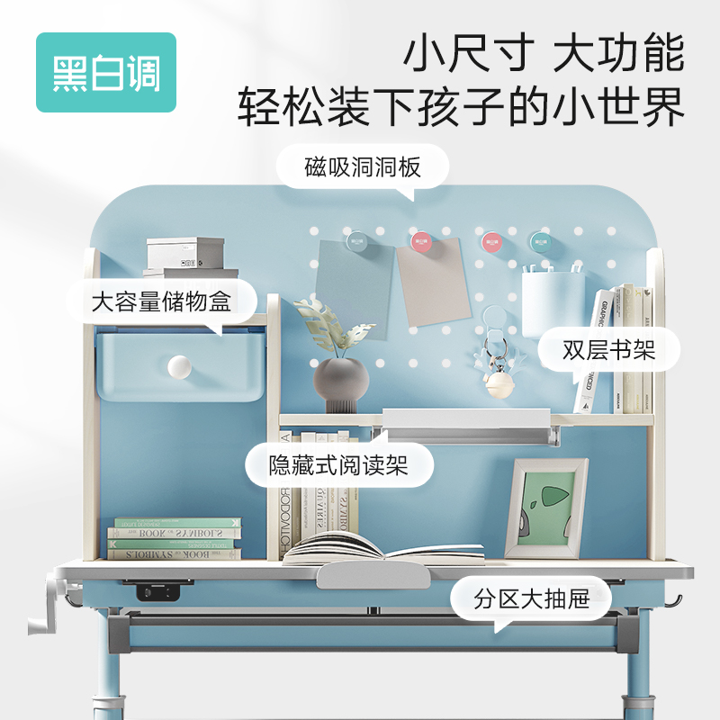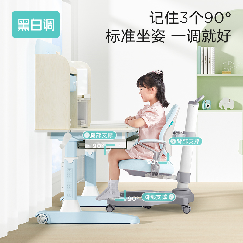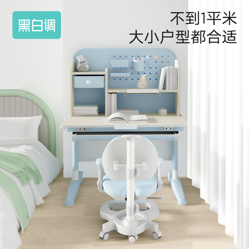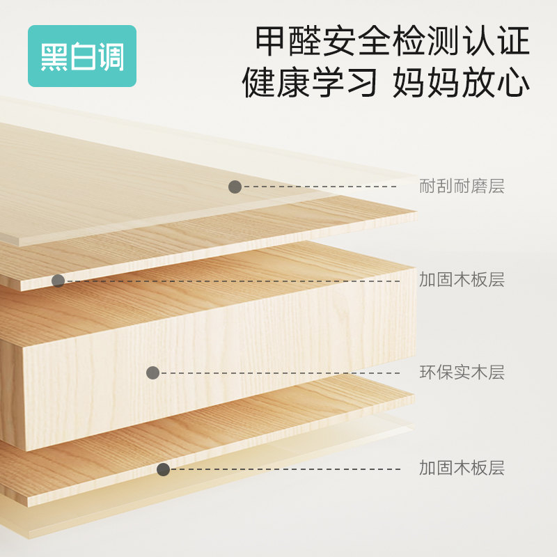 Black and white tone children study table small family type solid wood desk lift elementary school children's home with book table and chairs suit 90cm