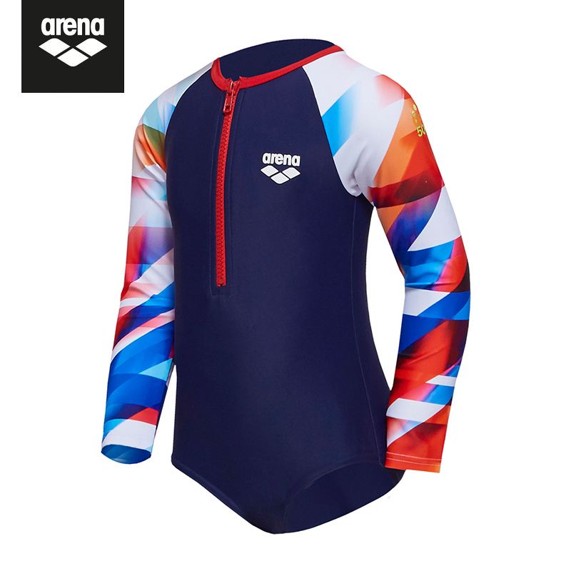 arena arena girls long sleeve sunscreen swimsuit middle child comfortable high-elastic soft triangle one-piece swimsuit