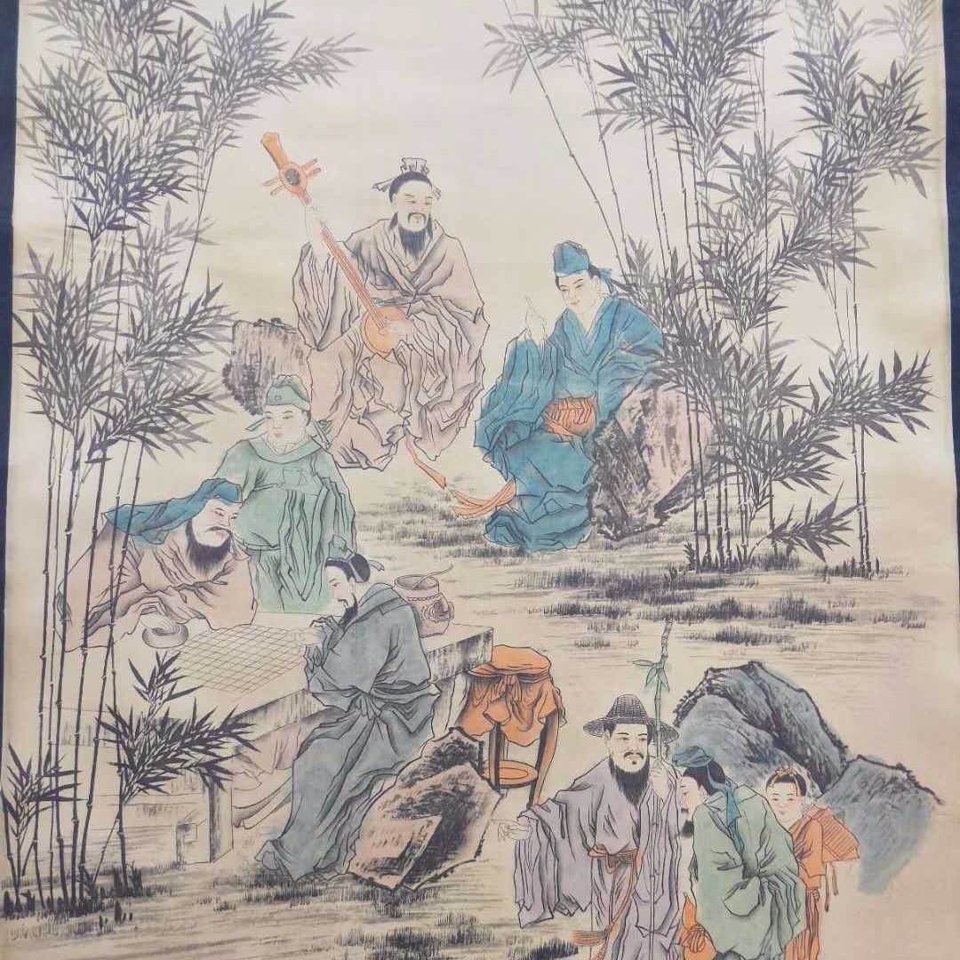 Zhang Daqian < Bamboo Lin Seven Xian > Ancient Play Character Painting Country Painting Ancient Play Mountain Painting Middle Hall Painting Famous Painting Book House Living Room Hanging Painting