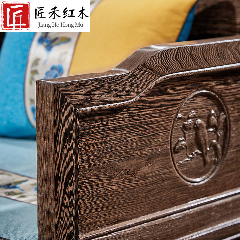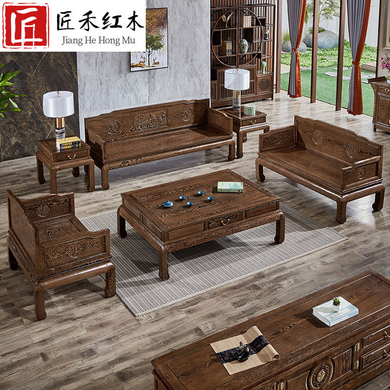 Mahogany furniture, new Chinese style living room, large apartment, modern minimalist solid wood, chicken wing wood, arhat bed, sofa combination