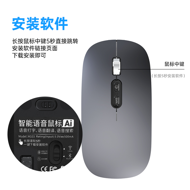 Biaz voice wireless sliding mouse rechargeable voice-controlled application Apple Huawei laptop desktop input translation talking microphone typing to identify muted mouse recording transliterates
