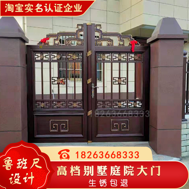 Aluminum art gate villa gate opposite door community courtyard door aluminum alloy electric double door Chinese wall gate