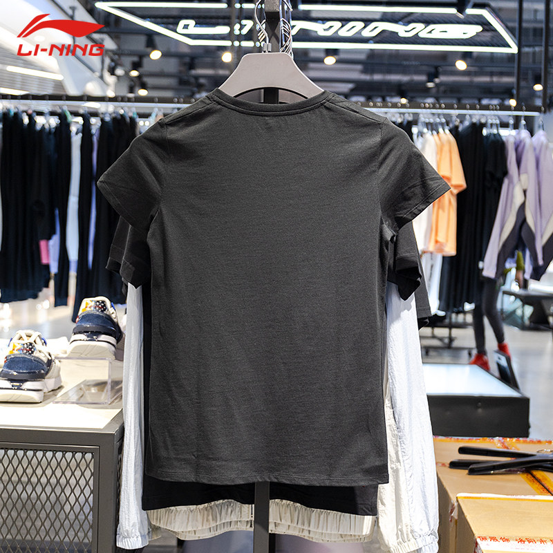 Li Ning Short Sleeve T-shirt Women's Dress 2022 Summer New Cotton Breathable Loose T-Shirt Harbor Wind Round Collar Half Sleeve Sportswear