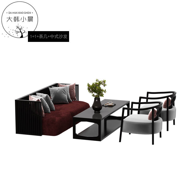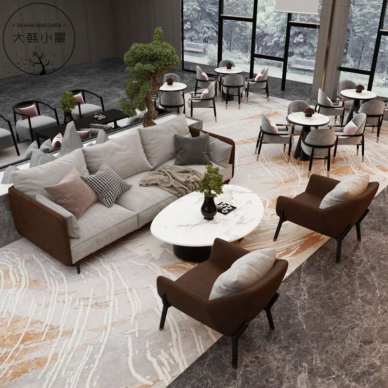 Negotiation chair Negotiations table One table Four chairs Single sofas trio position sofa tea table