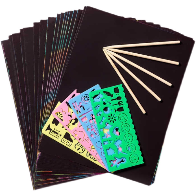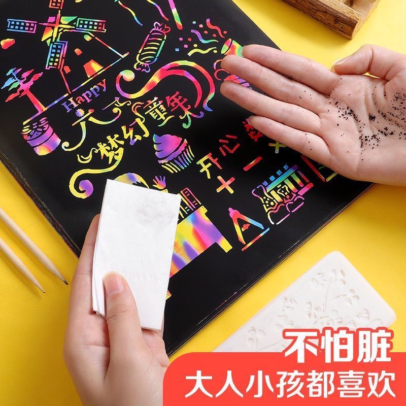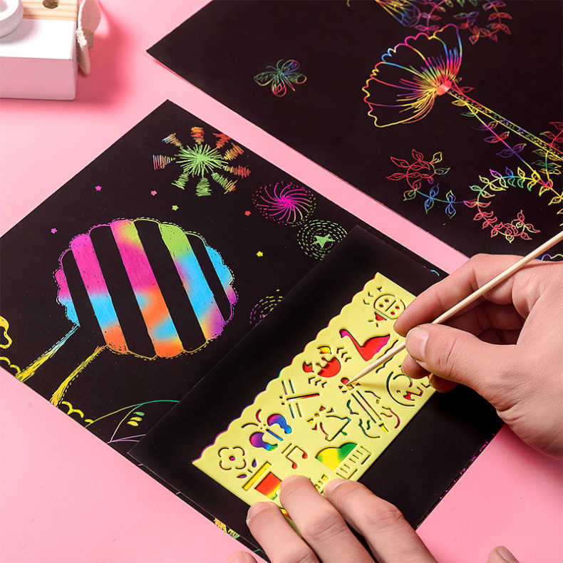 Scrape Paper Dazzling Children Color Scrape Wax Painting Monochrome Scraping Painting Nursery Black 8 Open Elementary Students 16K Graffiti