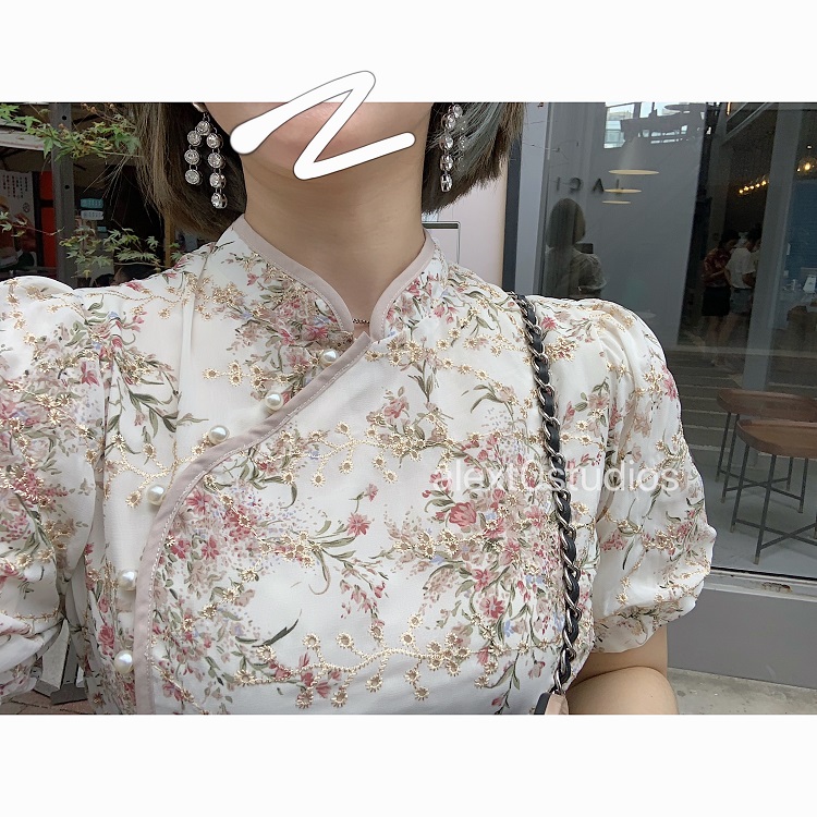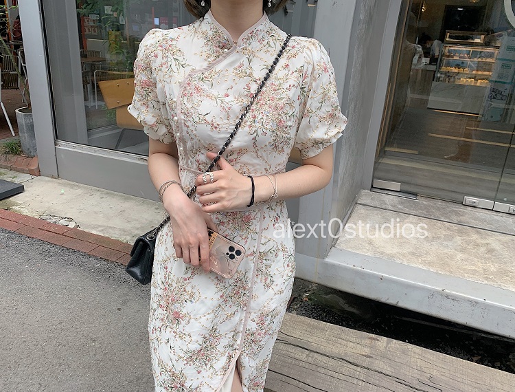 The richest man in stock new floral embroidery dress birthday party temperament improved cheongsam women