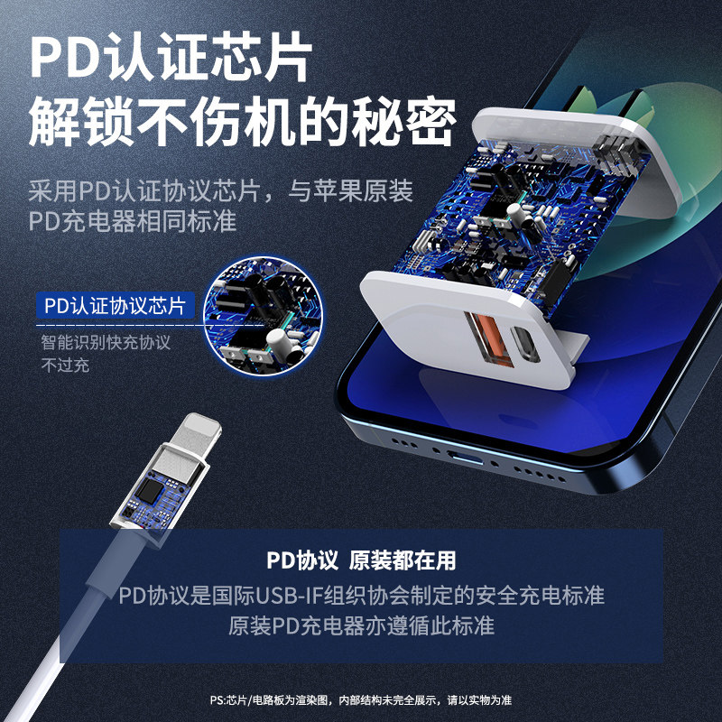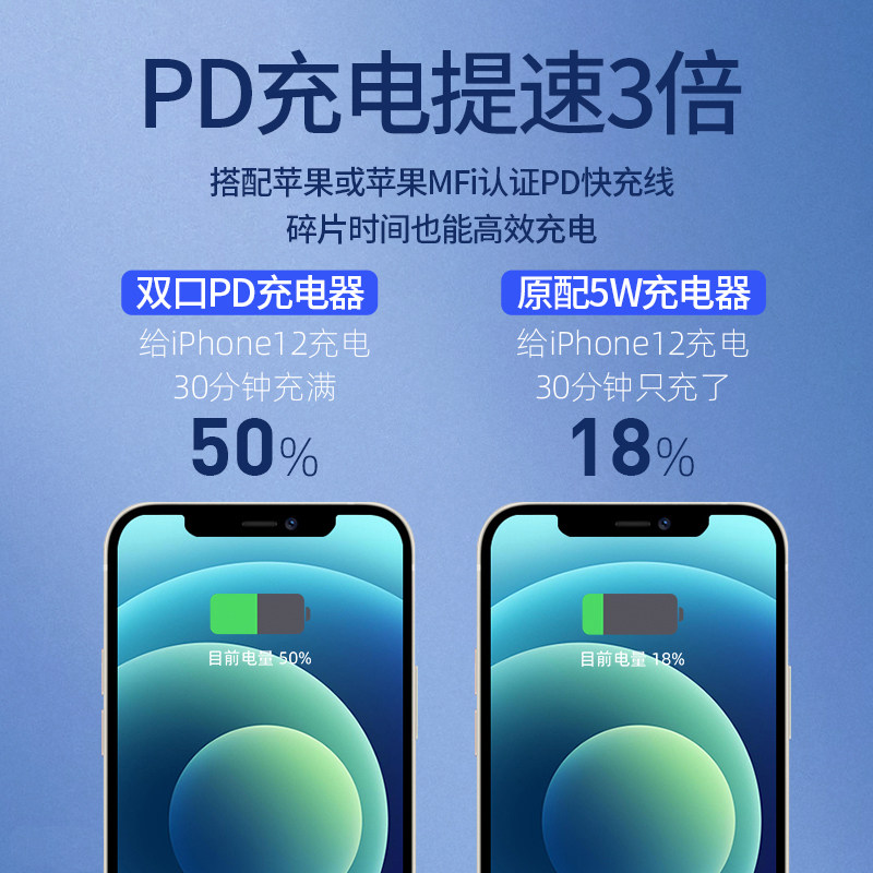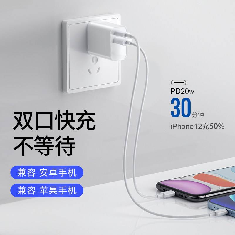 20W Charging Head (PD Fast Charging) Apple 8-12 New Tailored (20W Set) PD Fast Charging Head 1m PD Fast Charging Data Cable 20W Dual Port Charging Head (P