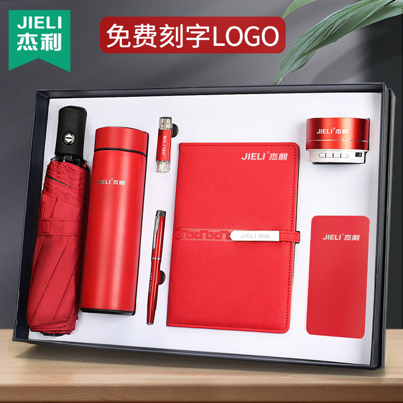 Business gift box set soft leather notebook custom printable logo lettering high-end meeting notepad to figure printing cover custom gift gift gift customer smart insulation cup u pan umbrella