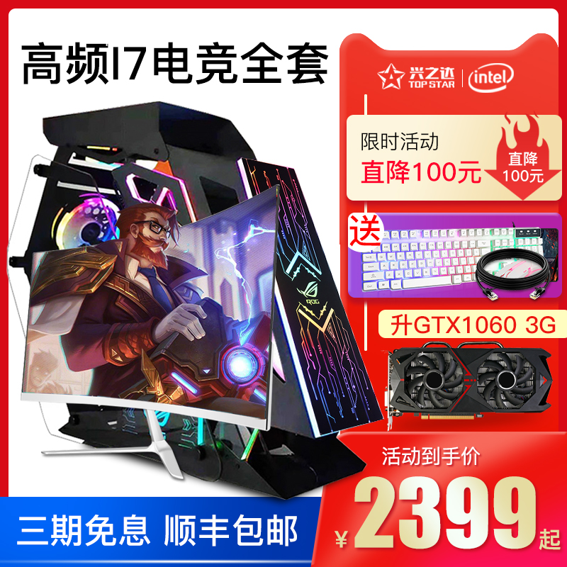 i7 Eight-core Game Type Eating Chicken Computer Host High Worthy Pink CF Desktop Computer Full Set Internet Café Live Hero League Csgo Complete Machine Home Office Design New Assembly Machine Forever Loot
