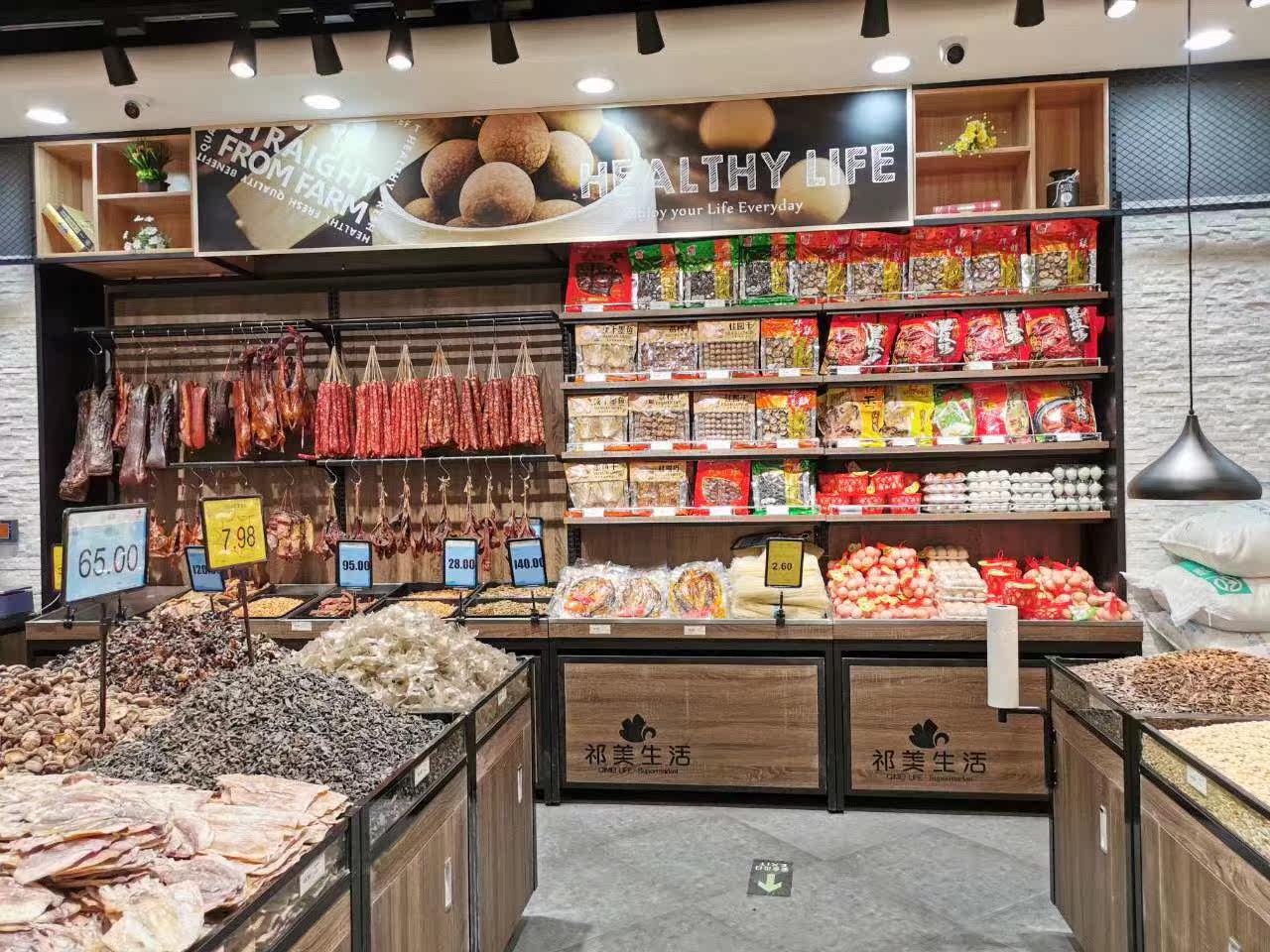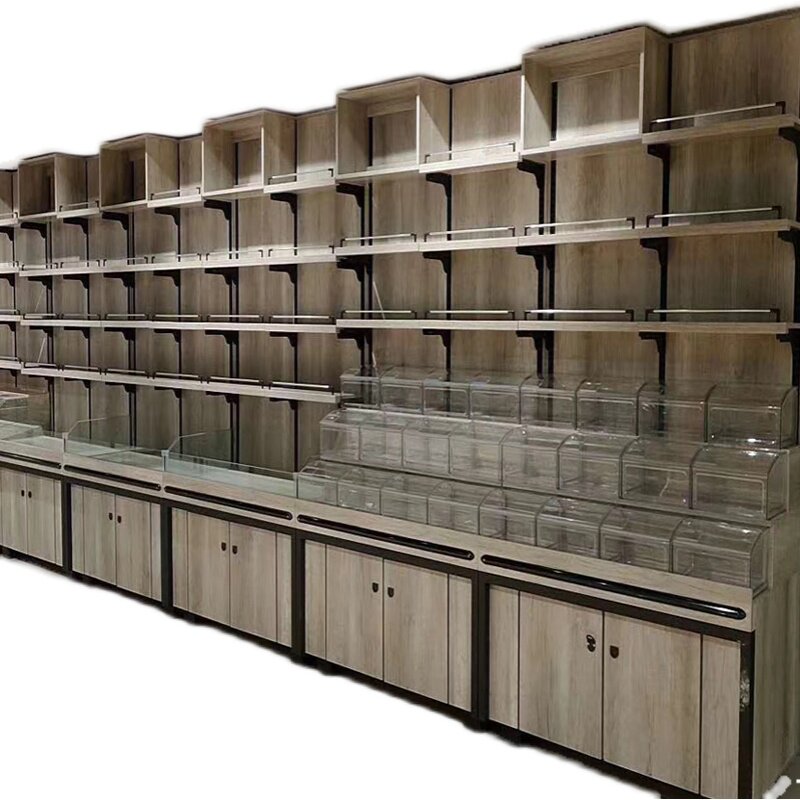 Supermarket dried fruit shelving by wall steel wood combined with bulk snacks 5 grain Cereals Candy Cabinet Rice Noodle Eggs Fried Containers