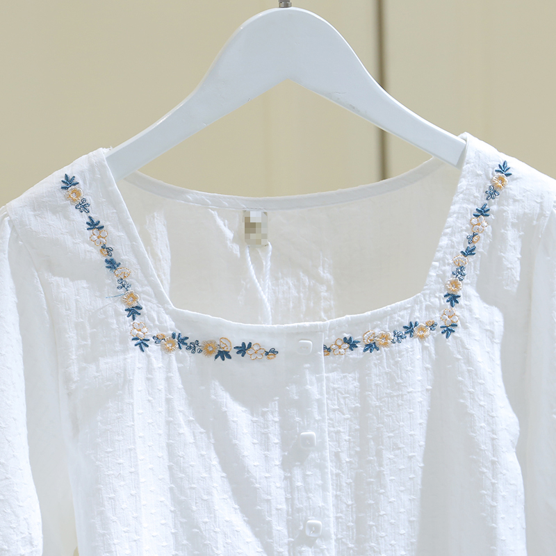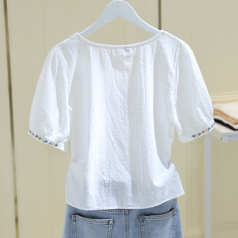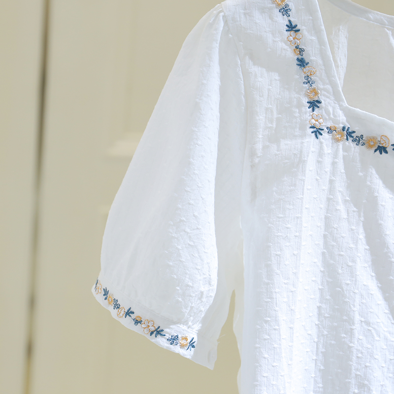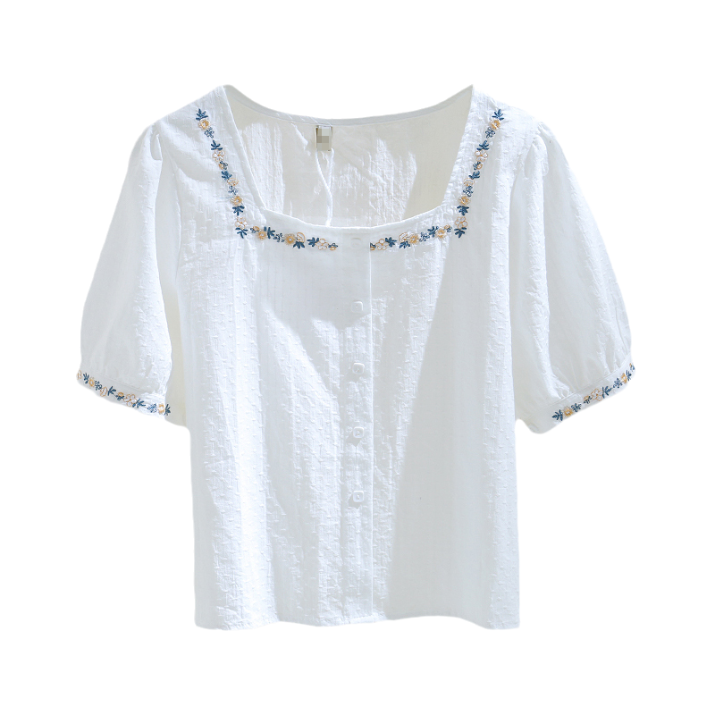 Hong Kong Square Collar Short Shirt Woman 2022 Summer New Design Sensation Small Crowd Loot Embroidered Short Sleeve Blouses
