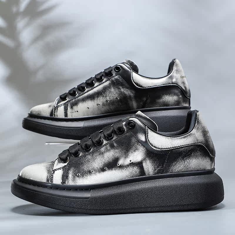 Handmade retro McQueen thick-soled white shoes men's hand-painted rubbing old casual sneakers dirty shoes trendy women's