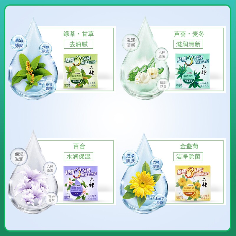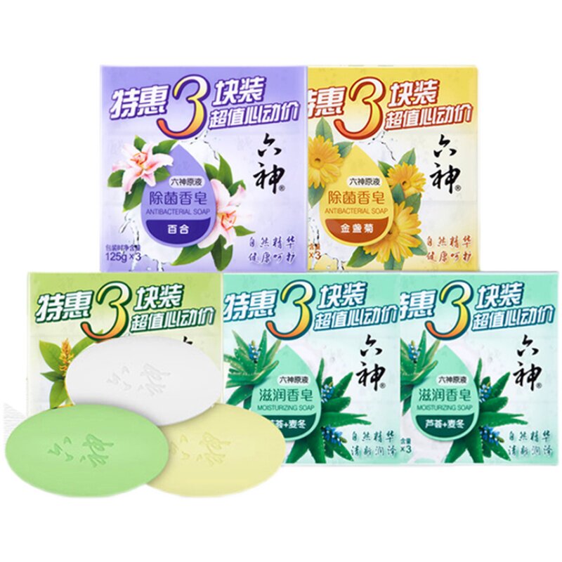 Six God Soap Bath Bath Soap Finish Soap 125g * 3 Blocks for adults Men and women Family loaded green tea licorice-Taobao