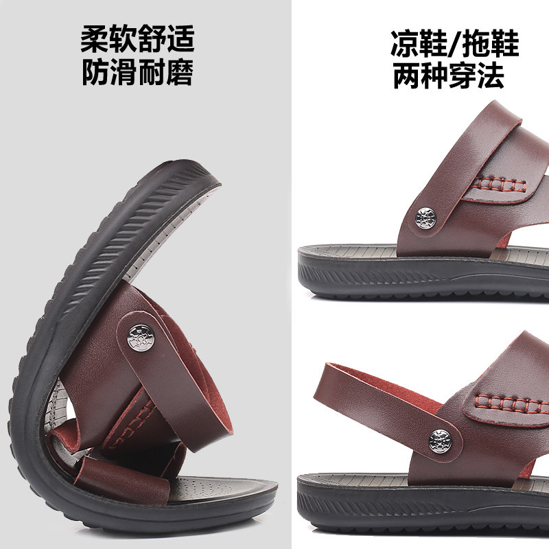 Sandshoes Men 2022 Summer New Leisure Leather Sandals Shoes Non-slip Men Slippers Beach Shoes Han Prints for Dual Use