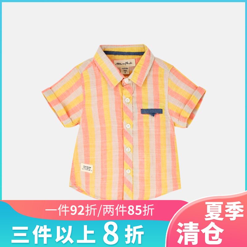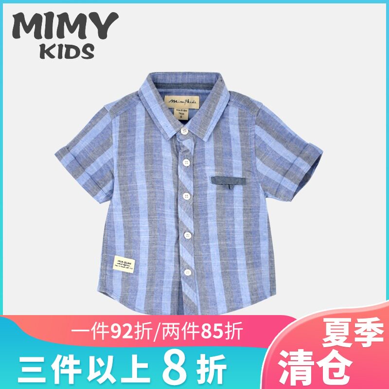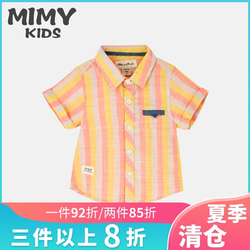 MIMY Kids Shirt Boys Summer Cotton Thin 2021 New Korean Version Hi-Tech Vertical Striped Top for Children