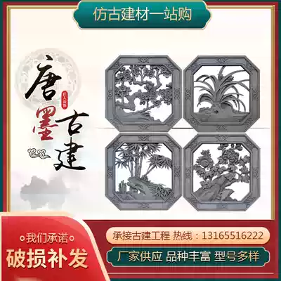 Antique brick carving cement hollow flower sash-shaped plum orchid bamboo chrysanthemum relief window grille Chinese courtyard pendant Wall transparent window