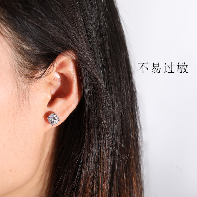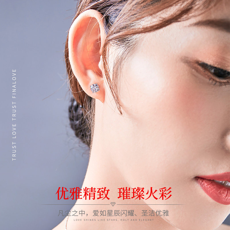 Chow Tai Fook PT950 platinum stud earrings women's four-claw temperament earrings simple 18k white gold diamond small earrings