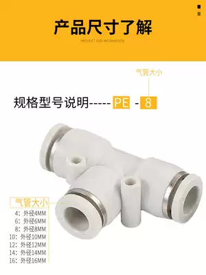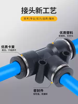 Trachea connector Three-way quick plug plastic three-plug T-type PE4 6 8 10 12 14 16mm pneumatic connector