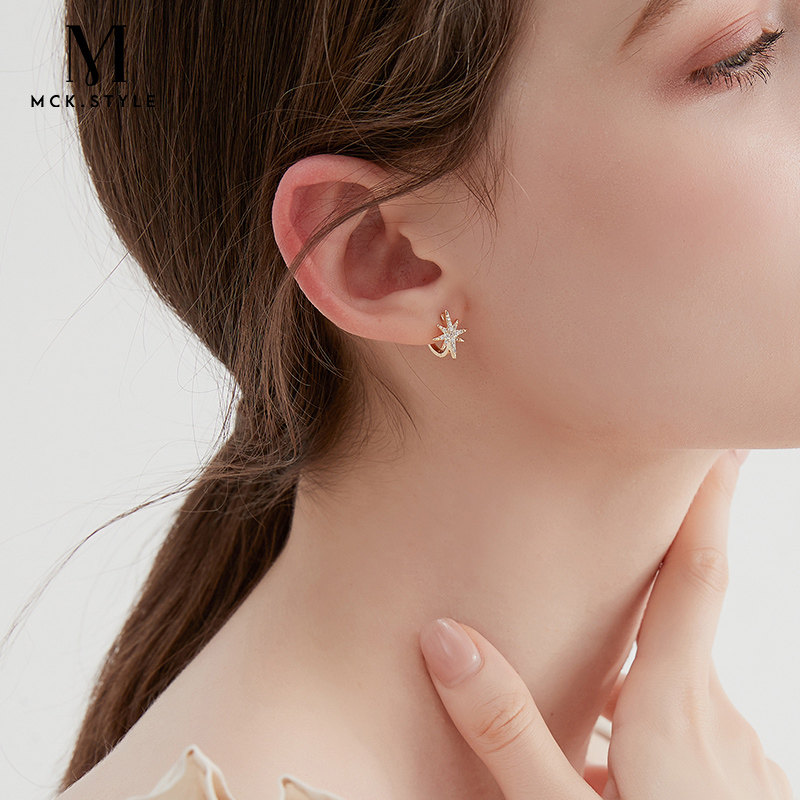 Three sets of star earbone entrainment earrings sets French style high level sensational sweetness student ear clip women without earring earrings