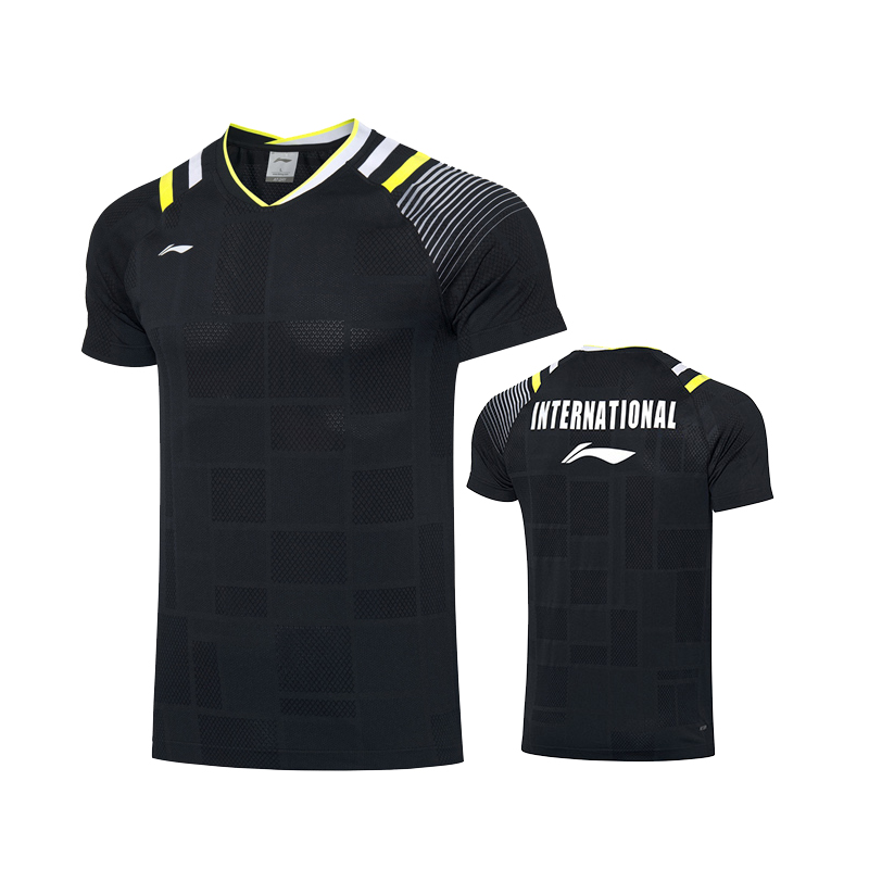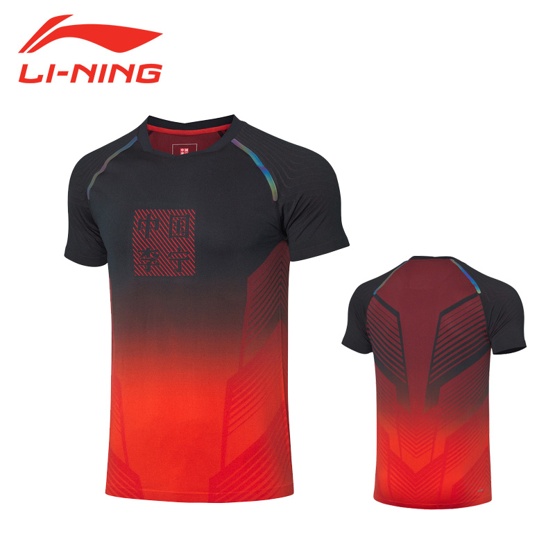 Li Ning Badminton Suit Contest Suit Men And Women Short Sleeve Breathable Speed Dry T-shirt All-English Race Training Suit Culture Cardigan