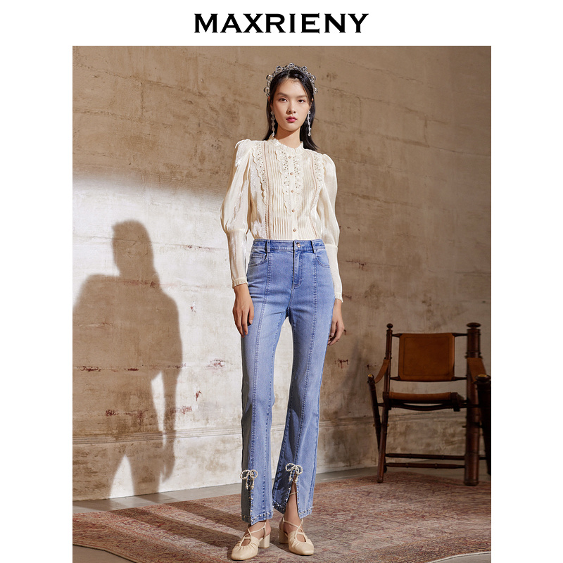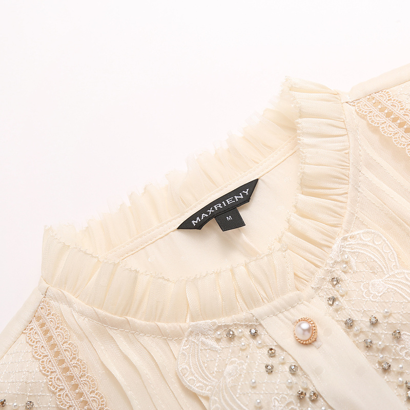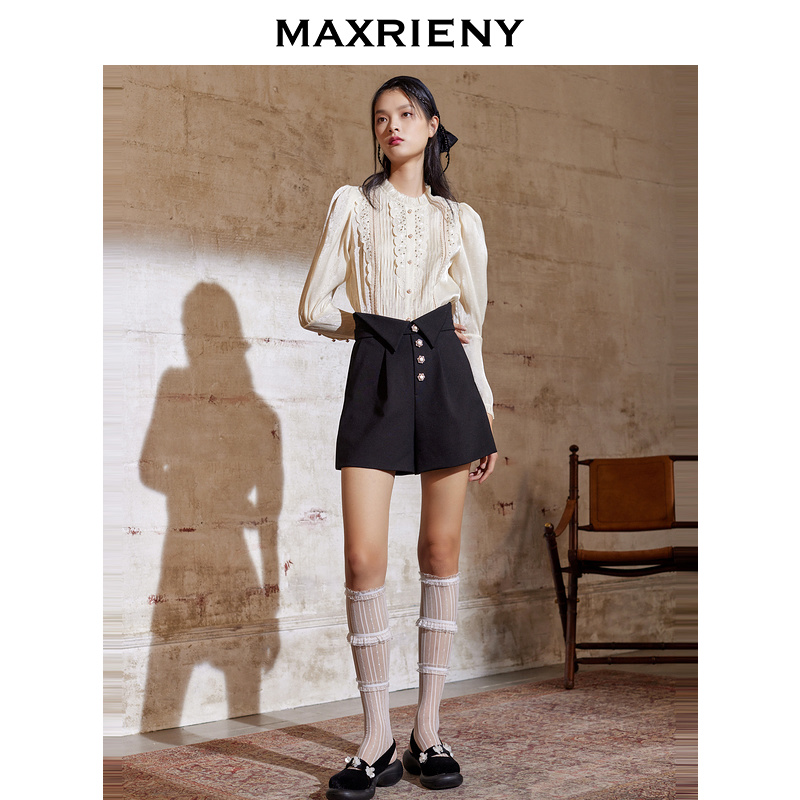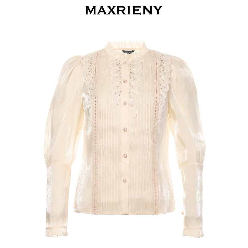 MAXRIENY stand collar chiffon shirt autumn ladies puff sleeve t shirt Western style loose long sleeve top