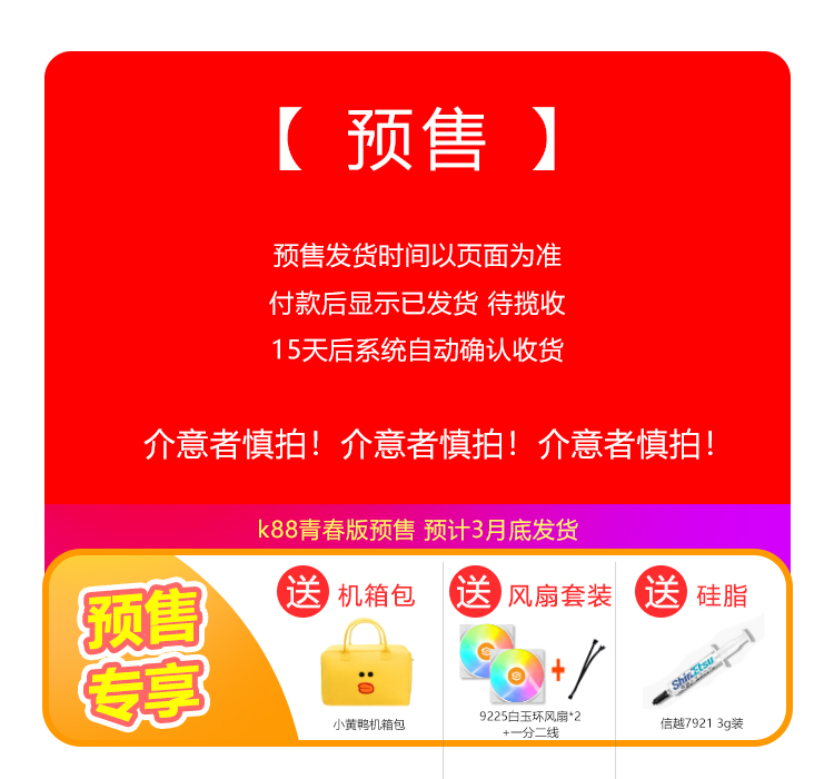 Aluminum k70 Red Time-limited Seconds Kill (1) Chassis Aluminum k70 Red time-limited second kill (2) Chassis aluminum k70 Red time-limited second kill (3) Chassis Cooling iron k88 youthful version pre-sale limit