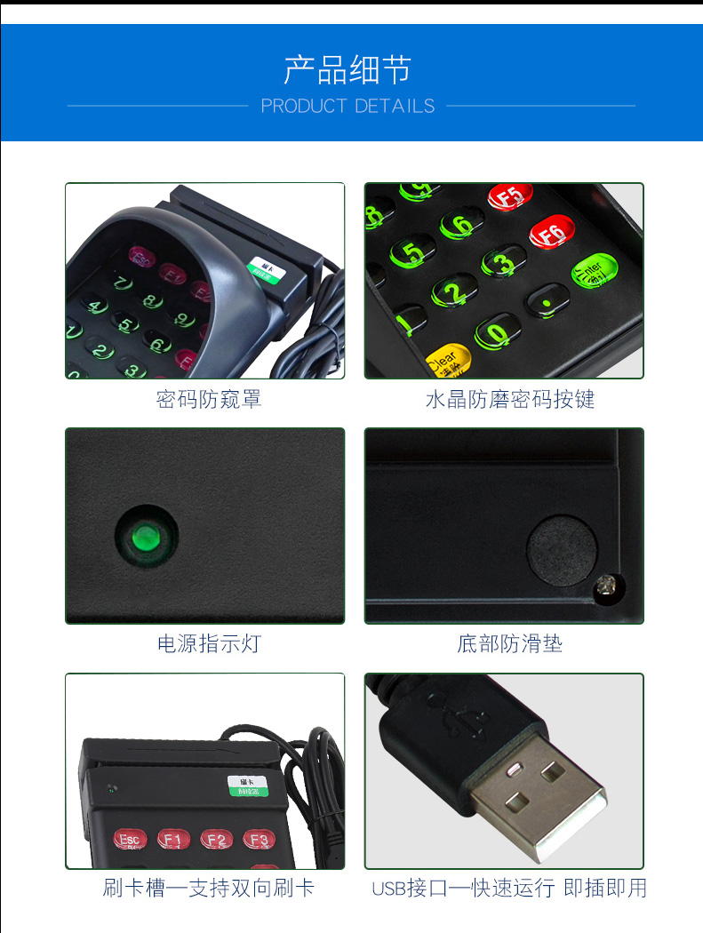 Magnet strip card reader reading inquiry machine consumer password keyboard cash register system software membership card swiping machine id card reader M1 card reader ic chip card reader inductive card reader sensitive