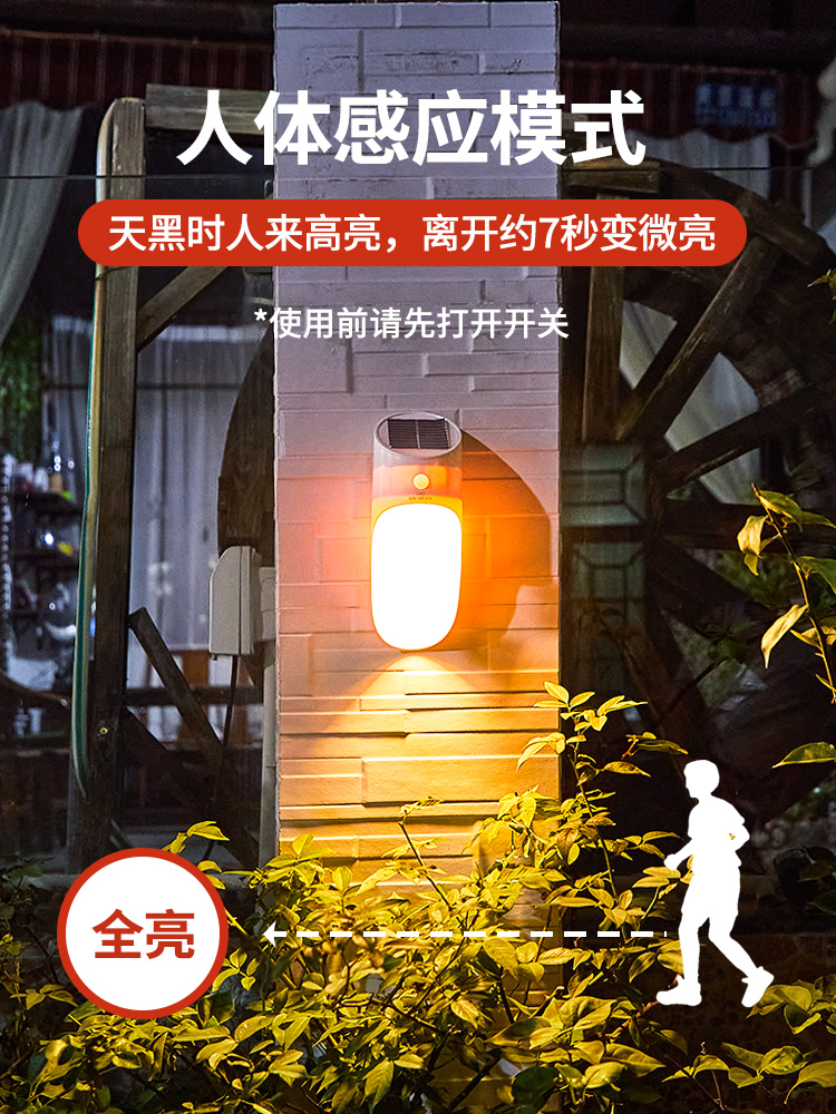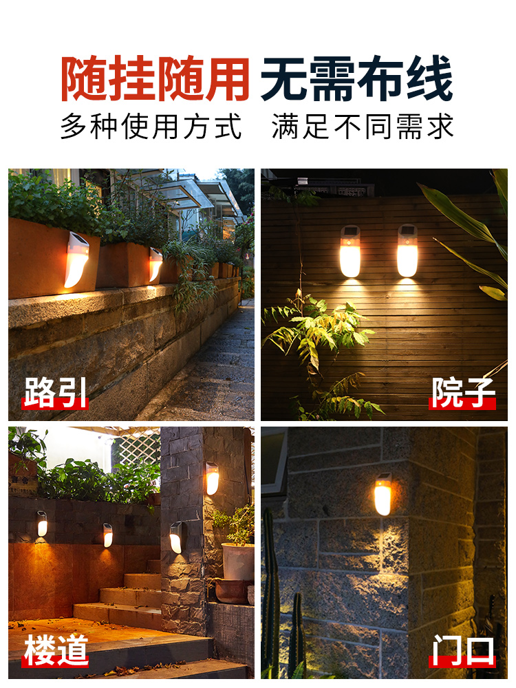 Solar outdoor wall light garden induction LED waterproof 0 electricity smart people to automatically bright bamboo tube 2W low power