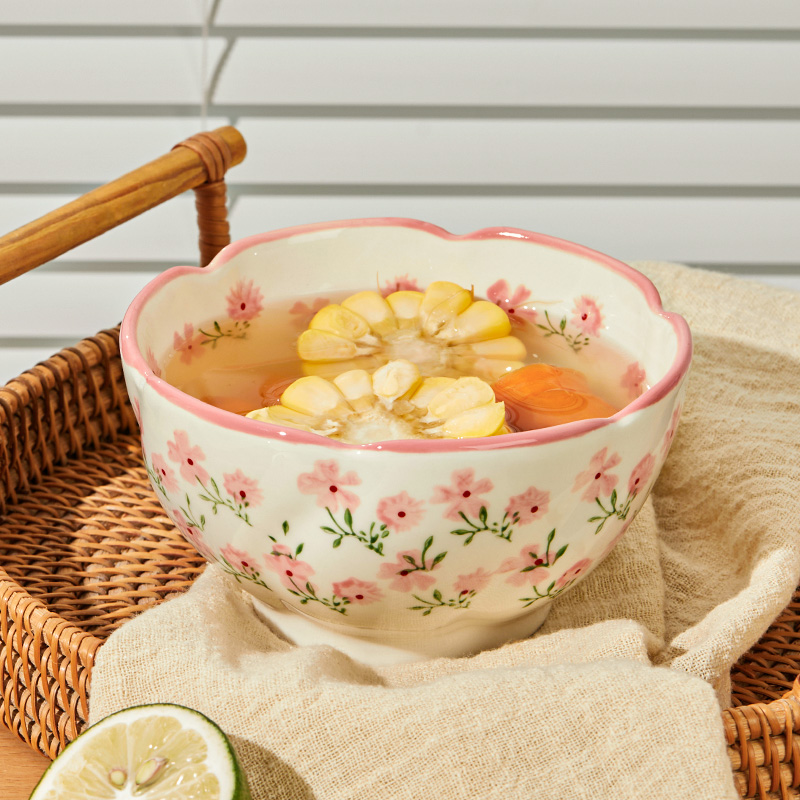 Day Style Ceramic Fruit Bowl Salad Bowl Home Eating Bowls Cute Young Girl Hearts Cutlery Creative Breakfast Bowl Rice Flowers