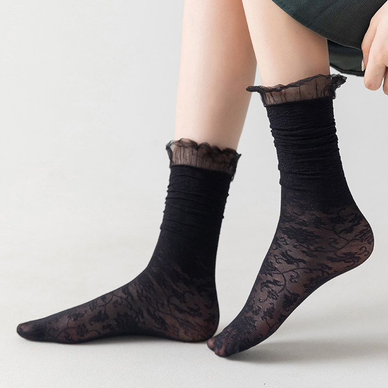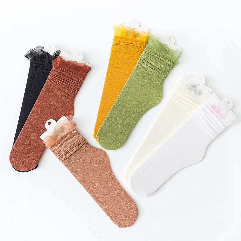 Socks female midbarrel socks Summer thin Lace Lace lace white Bubble Sox Lovely Japanese Tide Stockings summer