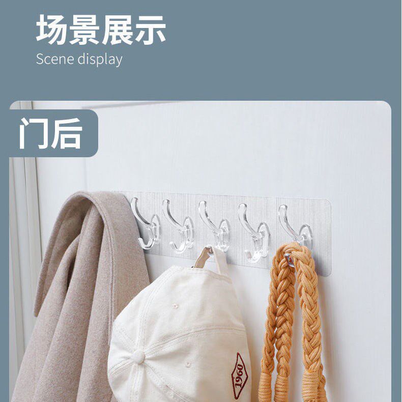 Hook row of strip doors walls free of punching wall-mounted clothes hook powerful adhesive adhesive free of traceless hanging rack plastic kitchenette