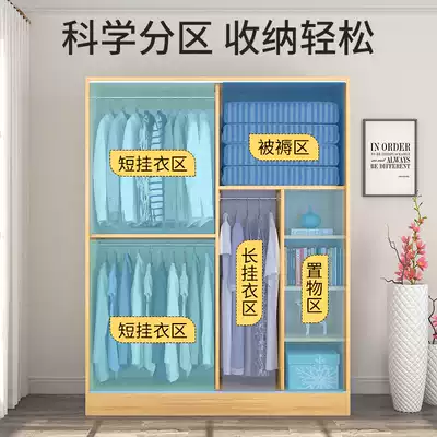 Wardrobe home bedroom rental room with simple modern sliding door solid wood cabinet small children's simple wardrobe
