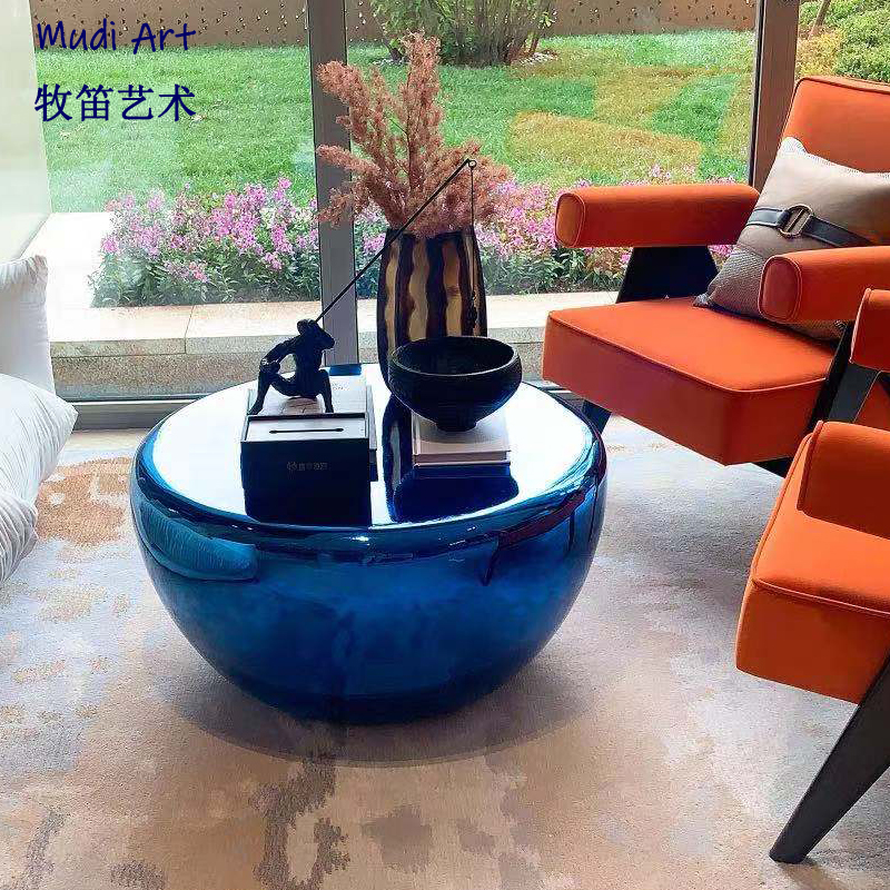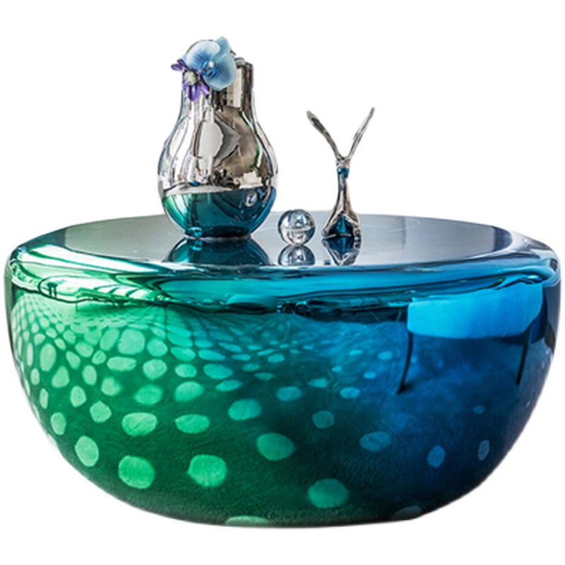 SAMPLE HOUSE DISPLAY CENTER GLASS FIBER COLOR BLUE GREEN SPRAY PLATED TEA TABLE PROFILED ROUND SIDE SEVERAL-LIKE BOARD ROOM LIVING-ROOM LIGHT EXTRAVAGANT