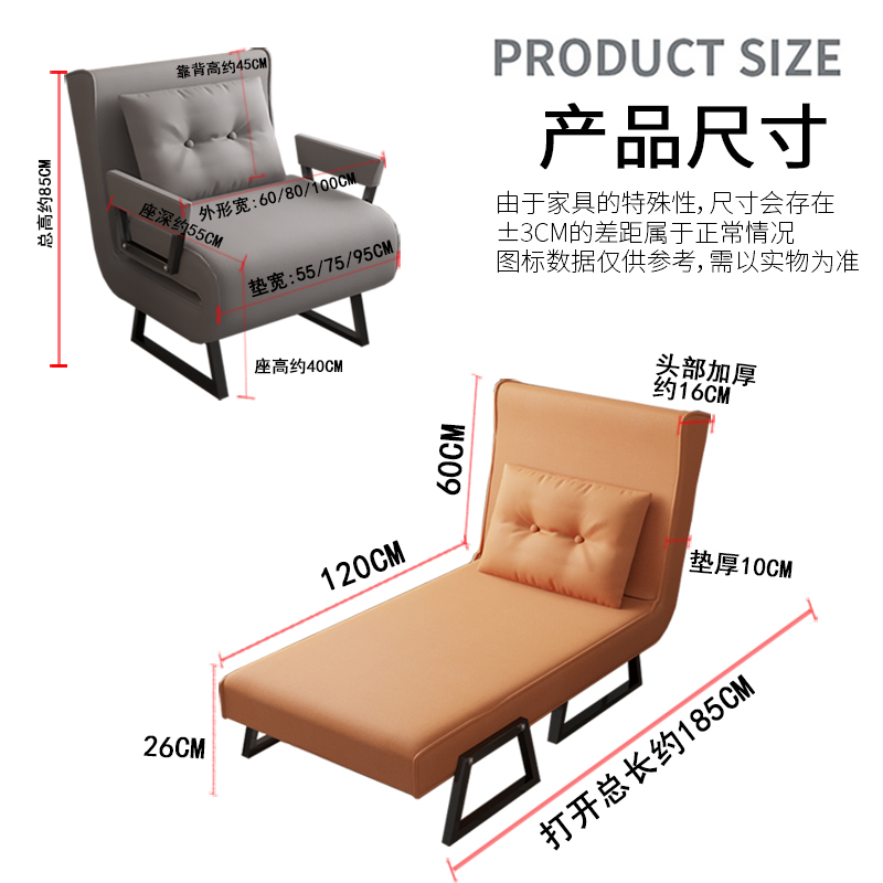 Single Folding Bed Bedroom Book Room Bookroom Small Family type Net Red Versatile Nordic Tech Cloth Sofa Bed Folding Dual-use