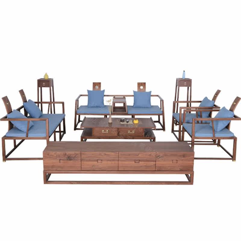 New Chinese-style solid wood living room modern minimalist coffee table double single suit small apartment Zen custom sofa combination