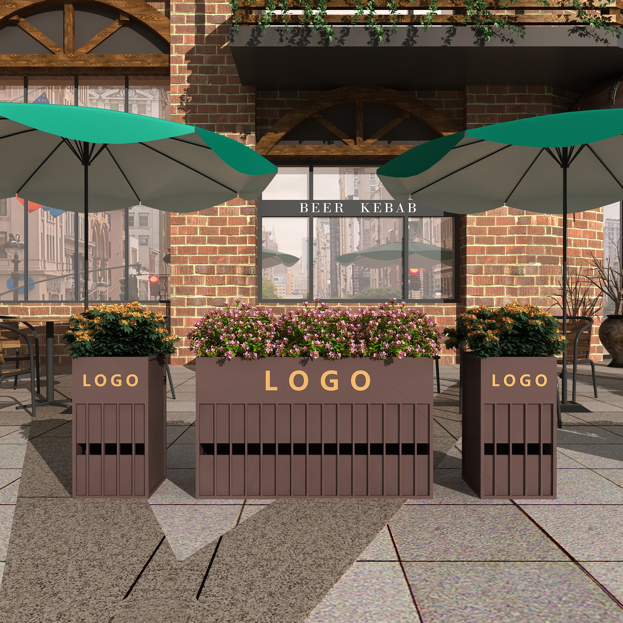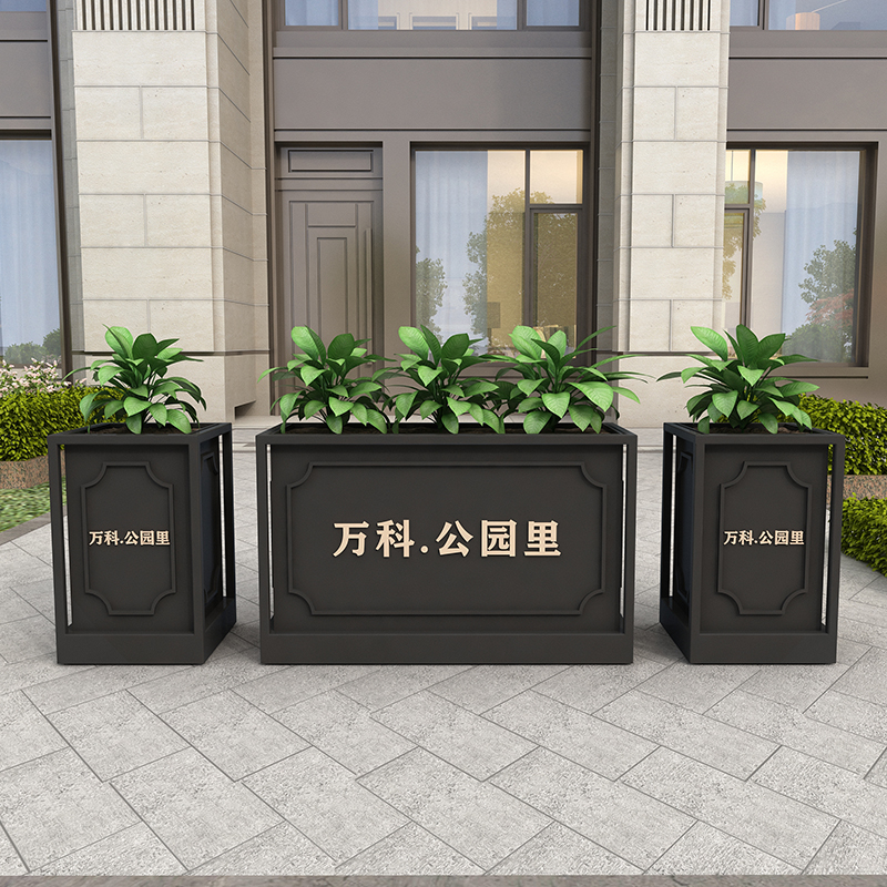 Iron Art Outdoor Flower Box Composition Custom Stainless Steel Flower Beds Municipal Green Rectangular Flower Groove Sales of Flowers