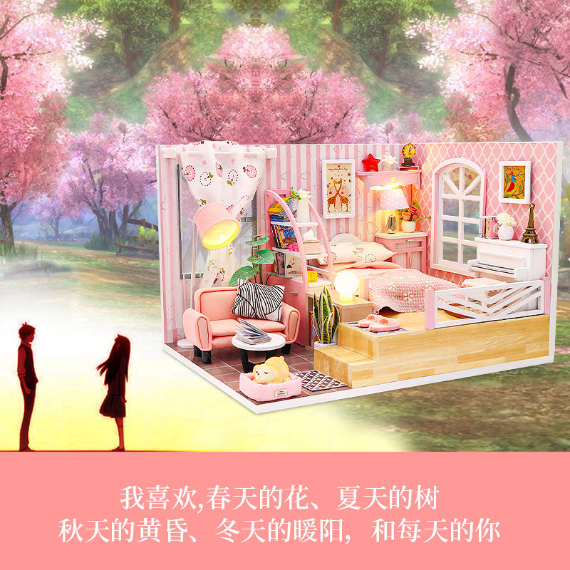 Model house diy hut pink girl heart art hand-assembled attic villa house toy birthday gift