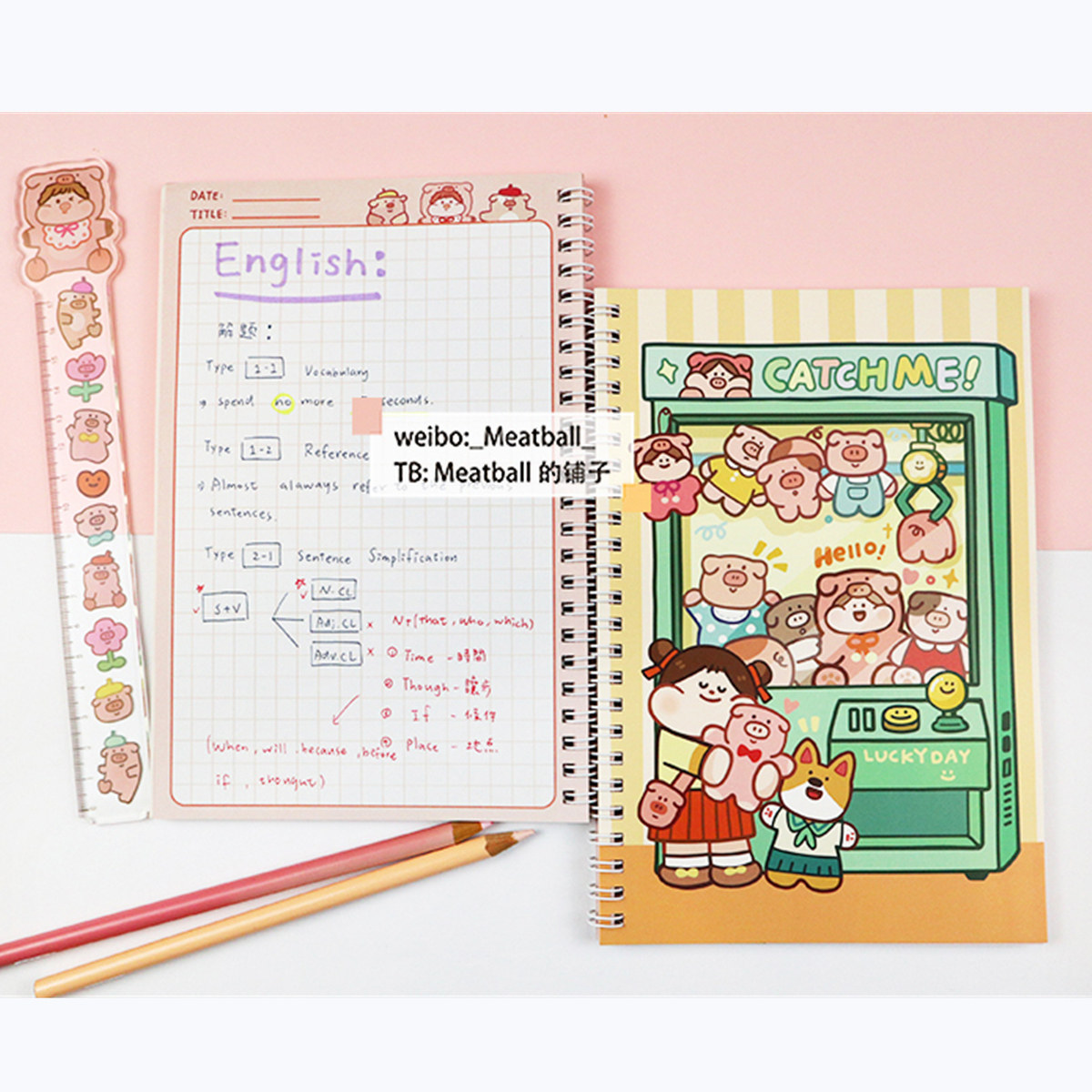 Meatball Meat Ball Original Clip Doll Machine Series Cute Coil Notebook Notepad Hand Ledger
