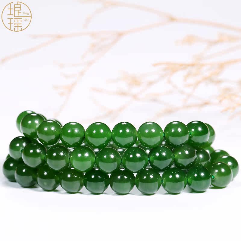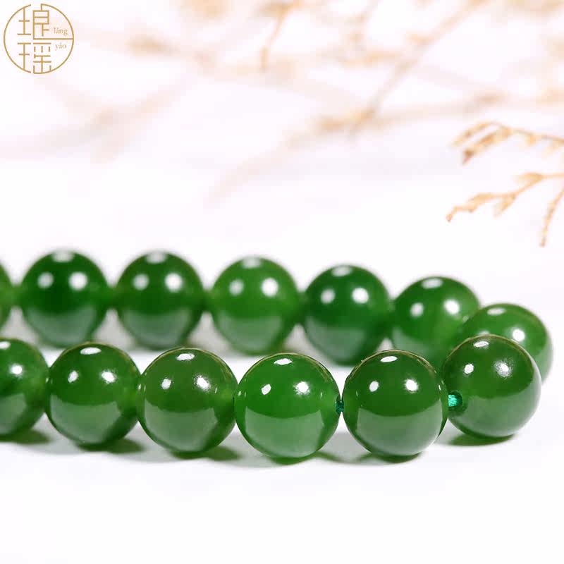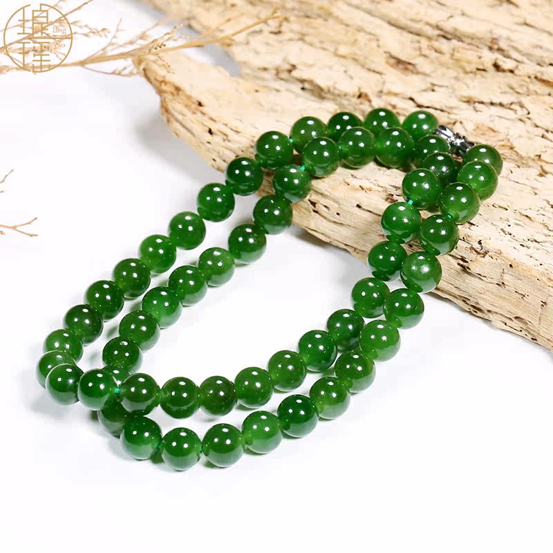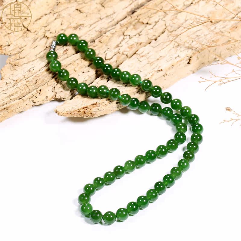 Luang Yao Xinjiang and Tian Yuyuan Pearl Necklace Old Pit Beyu Bing Jade Ice Bottom Spinach Green Lady Subsection 8mm Jade Pearl Lock Bone Chain