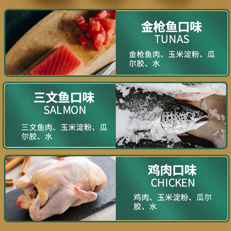 15gx15 branch (tuna taste) 15gx15 (salmon taste) 15gx15 branched (chicken taste) 15gx15 branched (mixed taste) 15gx30 branched (tuna taste)
