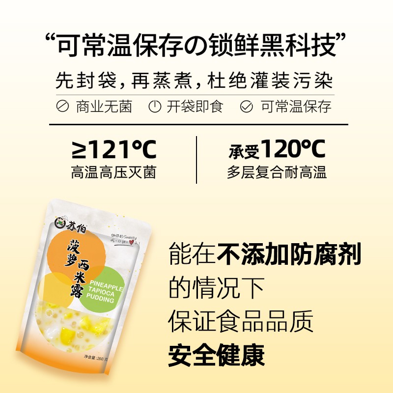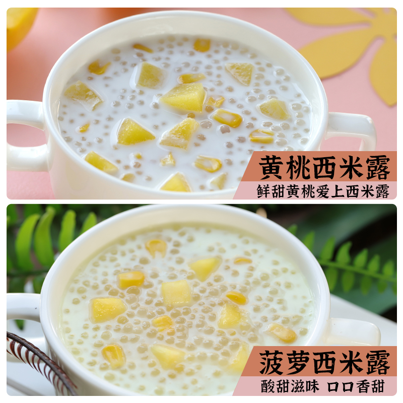 Subo sago 3 bags*260g yellow peach pineapple sago assorted fruit canned open bag ready-to-eat coconut milk dessert
