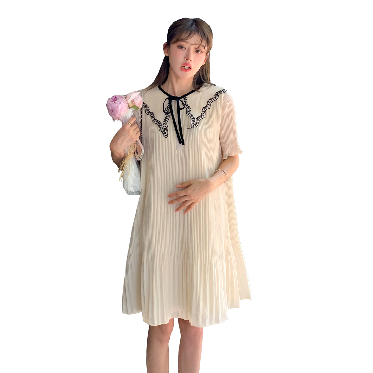 MITI Mitti Fashion Gestational Maternity Dress 2022 Summer New Loose size Pregnant Clothes Snowspun Medium Long version of dress