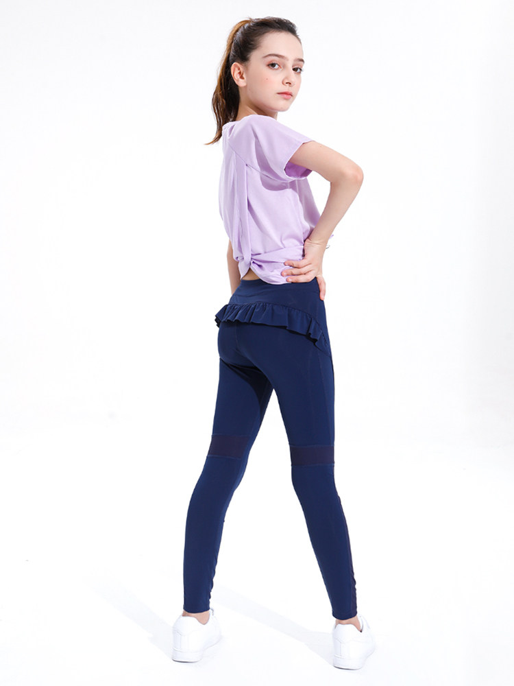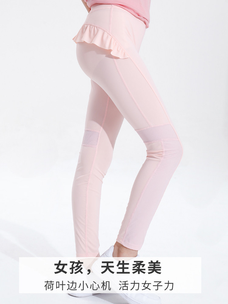 Girl Speed Dry Pants LOTUS LEAF SIDE PANTS BREATHABLE SPORTS PANTS YOGA PANTS LACE 90% PANTS 2021 NEW SUMMER THIN