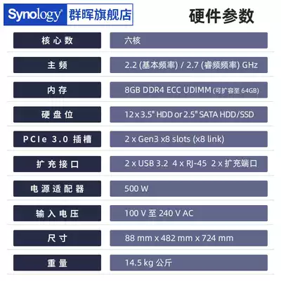 (Shunfeng) Synology Group Hui RS3621RPxs 12-disk dual power supply 2U rack mount NAS host storage File Server Enterprise sharing cloud disk