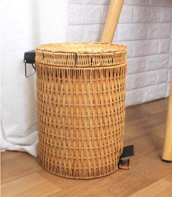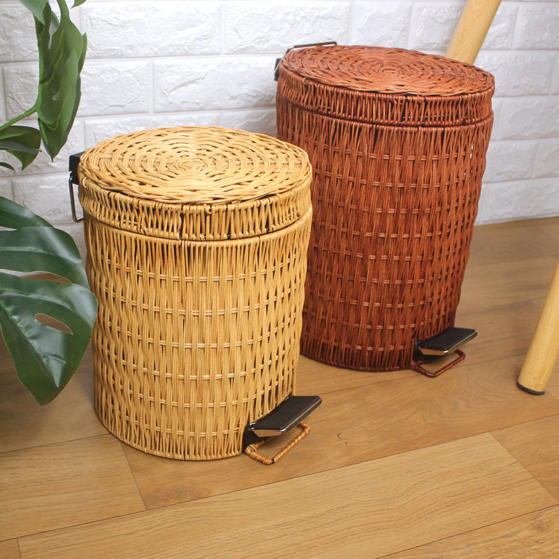 Fashion rattan pedal covered garbage can creative simple star hotel guest room hotel indoor leather tube household