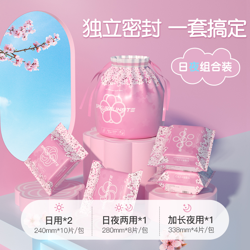 Cherry-speaking liquid sanitary cotton women's brand day and night combined with an ultra-thin, breathable silver negative ion aunt