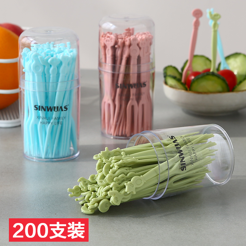 Creative Cute Fruit Fork Set Disposable Cartoon Small Fork Storage Can European-Style Household Children Eating Fruit Signs