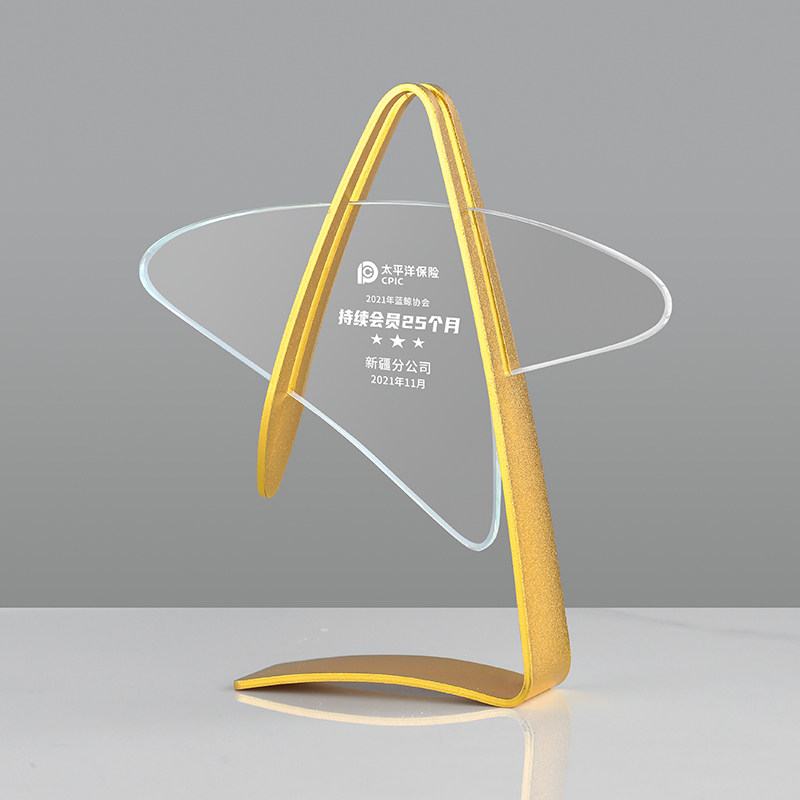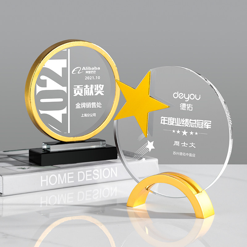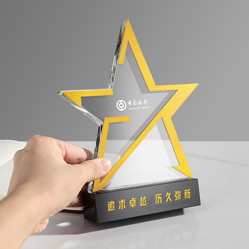 New high-end creative custom crystal metal gold, silver and copper five-pointed star trophy annual outstanding employee awards medal