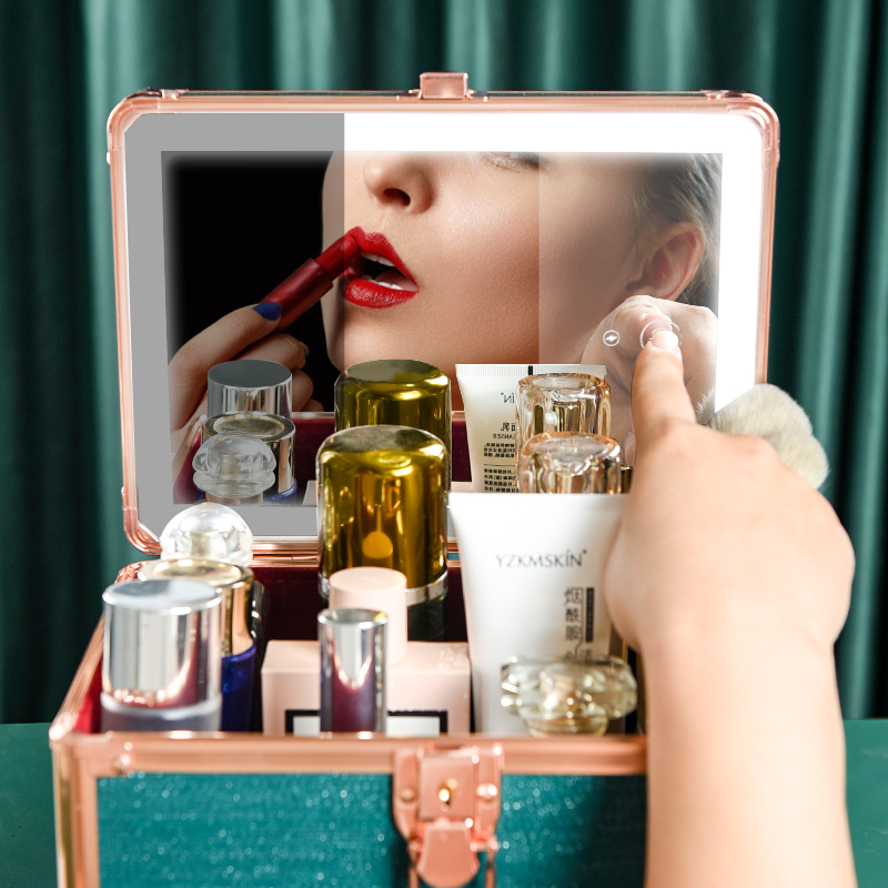 Palan 2022 New Portable Hand-held Cosmetic Case with Light and Lock Professional Makeup Artist Advanced Cosmetic Storage Bag