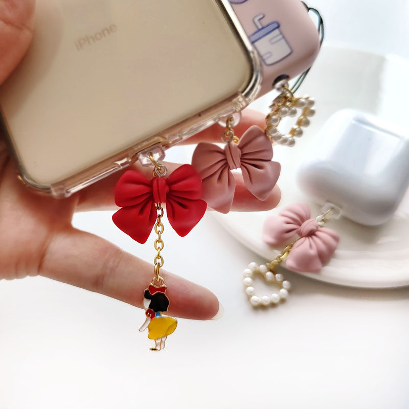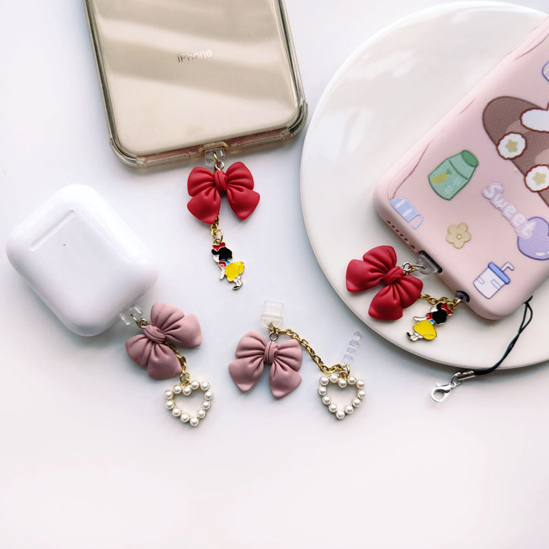 Red Bow Tie Princess 3 5mm Headphones Dust Stopper Pink Bow Tie Pearl 3 5mm Headphones Dust Stopper Red Bow Tie Princess Apple (Data Mouth) Pink Bow Tie Pearl Apple (data